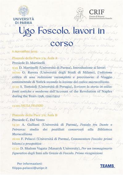 14:30 A. Galliani (Università di Parma), Foscolo tra Dante e